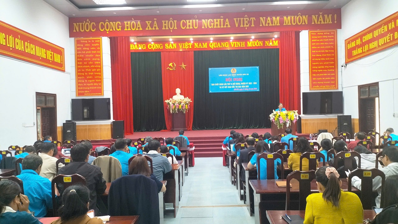 Chiều ngày 11/12/2024, Liên đoàn Lao động huyện Đăk Hà tổ chức Hội nghị Ban Chấp hành lần thứ VI (mở rộng) khóa VI, nhiệm kỳ 2023-2028 tổng kết hoạt động Công đoàn năm 2024; phát động, ký kết giao ước thi đua năm 2025. Dự Hội nghị có đồng chí A Xây - Phó Chủ tịch LĐLĐ tỉnh, các đồng chí Ủy viên Ban Chấp hành và các đồng chí Chủ tịch, Phó chủ tịch các Công đoàn cơ sở trực thuộc.