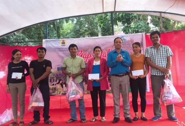 Ảnh: Chủ tịch Liên đoàn Lao động tỉnh Rơ Chăm Long trao quà cho các gia đình tiêu biểu tại xã IaChim nhân kỷ niệm 18 năm ngày Gia đình Việt Nam 28/6