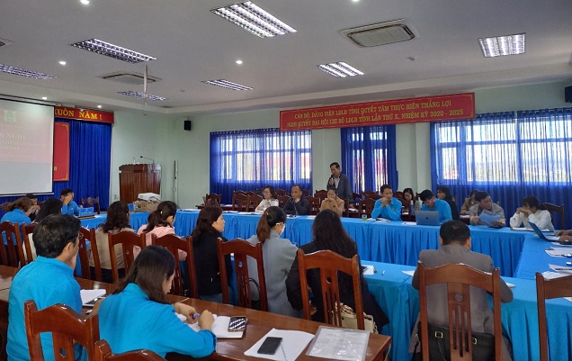 Sáng ngày 23/01/2024, Liên đoàn Lao động tỉnh Kon Tum tổ chức Hội nghị tổng kết công tác tài chính công đoàn năm 2023. Dự Hội nghị có các đồng chí Ủy viên Ban Thường vụ Liên đoàn Lao động tỉnh; chủ tịch, phó chủ tịch, kế toán công đoàn cấp trên cơ sở trực thuộc và Nhà Văn hóa Lao động tỉnh. Hội nghị nhằm thực hiện đạt mục tiêu đề ra tại Diễn đàn thảo luận trước thềm Đại hội XIII Công đoàn Việt Nam với chủ đề “Các giải pháp nâng cao hiệu quả công tác quản lý tài chính, tài sản công đoàn”.