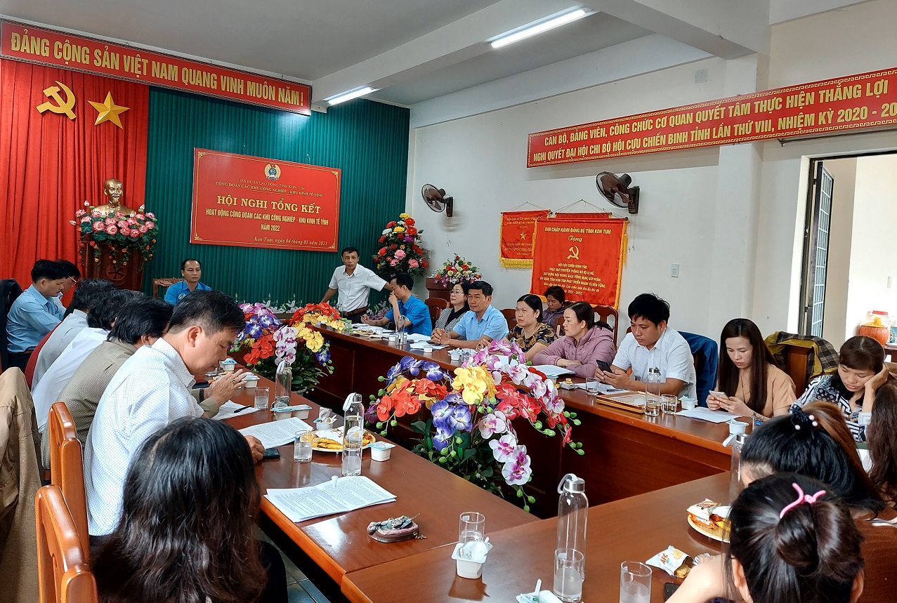 Tại Hội nghị, Ban chấp hành CĐKCN tỉnh Kon Tum tặng giấy khen cho 04 tập thể và 12 cá nhân đã có thành tích xuất sắc trong phong trào thi đua và hoạt động công đoàn năm 2022; tặng giấy khen cho 1 tập thể và 6 cá nhân đạt thành tích suất sắc trong phong trào thi đua “Giỏi việc nước, đảm việc nhà”; tặng giấy khen cho 1 tập thể và 05 cá nhân đạt thành tích trong phong trào thi đua “Xanh – sạch – đẹp – An toàn vệ sinh lao động”; tặng giấy khen cho 02 cá nhân đạt thành tích xuất sắc trong hoạt động phong trào thi đua “Văn hóa, thể thao”.